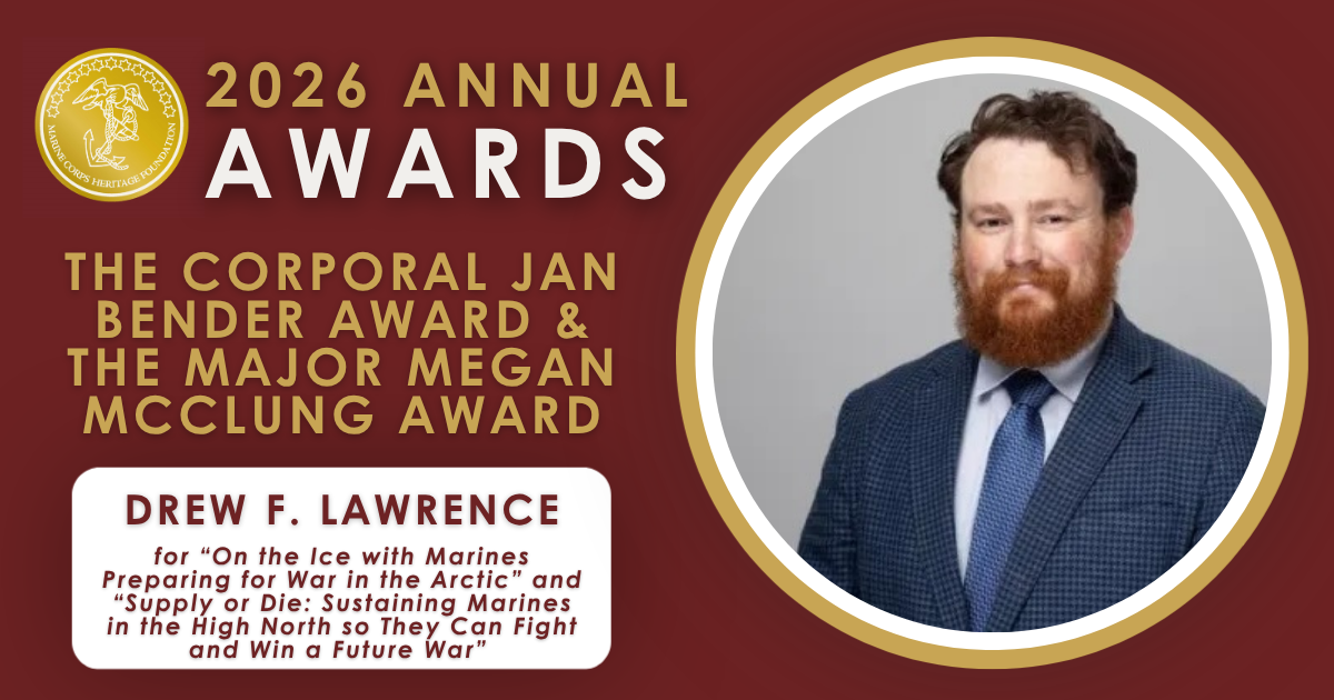 "Through their exceptional talent and authenticity, these outstanding writers, artists, and photographers explore the rich history, traditions, and culture of the Marine Corps,” said MajGen James W. Lukeman, USMC (Ret), the Foundation's President and CEO. "We are privileged to highlight their remarkable work at our Foundation's Annual Awards and hope that their example inspires others to tell the story of our Marine Corps.”