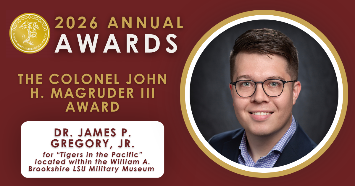 "Through their exceptional talent and authenticity, these outstanding writers, artists, and photographers explore the rich history, traditions, and culture of the Marine Corps,” said MajGen James W. Lukeman, USMC (Ret), the Foundation's President and CEO. "We are privileged to highlight their remarkable work at our Foundation's Annual Awards and hope that their example inspires others to tell the story of our Marine Corps.”