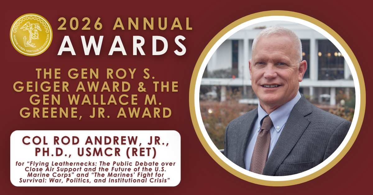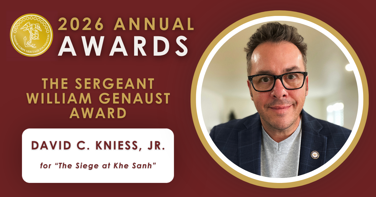 "Through their exceptional talent and authenticity, these outstanding writers, artists, and photographers explore the rich history, traditions, and culture of the Marine Corps,” said MajGen James W. Lukeman, USMC (Ret), the Foundation's President and CEO. "We are privileged to highlight their remarkable work at our Foundation's Annual Awards and hope that their example inspires others to tell the story of our Marine Corps.”